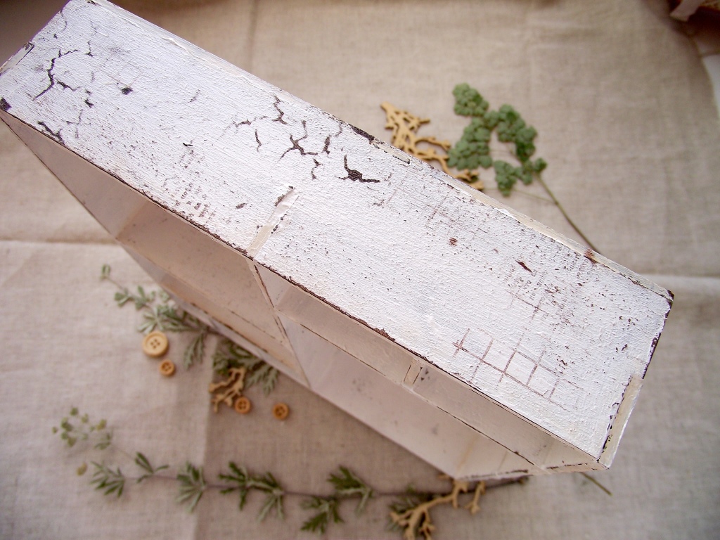 Для начала хочу сказать вам, что я убрала нижнюю центральную перегородку для того, чтобы вместить на эту площадь мини-альбомчик. Теперь берем любую темную краску (у меня бронзовая), которая по тону вам подходит под бумагу, и красим боковые стенки шадоу бокса внутри и снаружи. Задние стенки красить не нужно, так как их мы будем заклеивать бумагой.